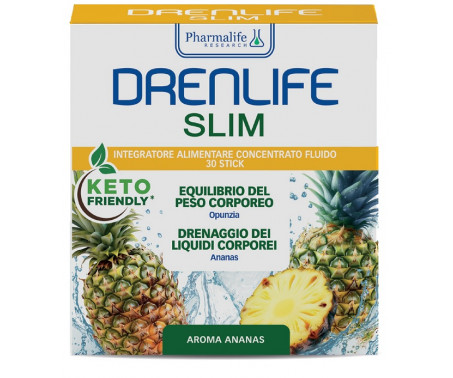Drenlife Slim Stick è un integratore alimentare concentrato fluido in pratici stick da diluire in acqua a base di estratti vegetali, in particolare Ananas, Garcinia e Opunzia.