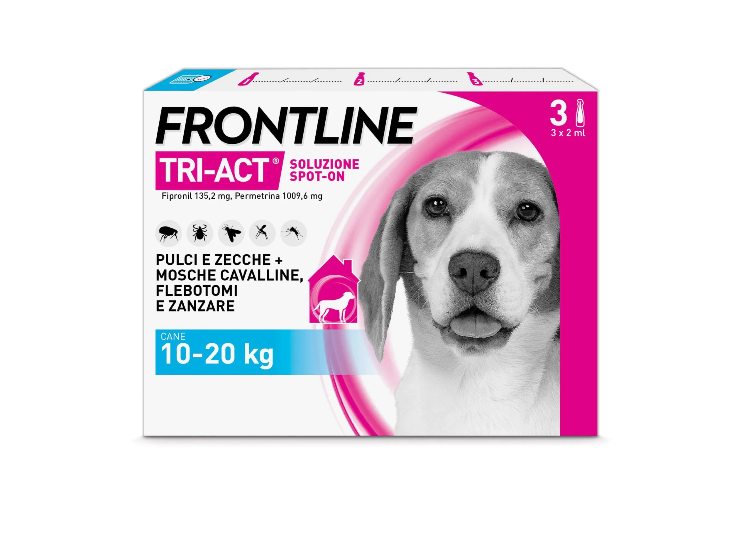 Frontline Tri-Act x3 Pipette, Antiparassitario Per Cani e Cuccioli (Taglia M 10-20Kg) Contro Pulci, Zecche, Zanzare, Pappataci e Leishmaniosi